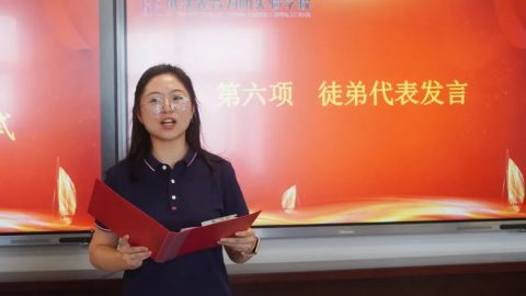 徒弟代表皮霓老师发表感言:“诚心是我们拜师的态度;成长是我们拜师学习的目标。师傅们言传身教,倾囊相授,一定会助力青年教师快速成长。学生们也会不断激励自己前进,用心陪伴孩子们成长每一天,用优异的教育教学成绩向学校、家长和社会交出一份满意的答卷。”