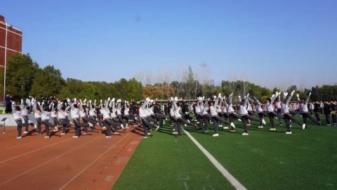 随着广播体操音乐的响起,同学们紧跟节奏,动作娴熟,张弛有度。从预备节到整理运动,每一个动作都刚劲有力,把广播体操明快流畅的风格特点展露无遗。