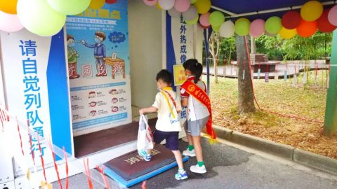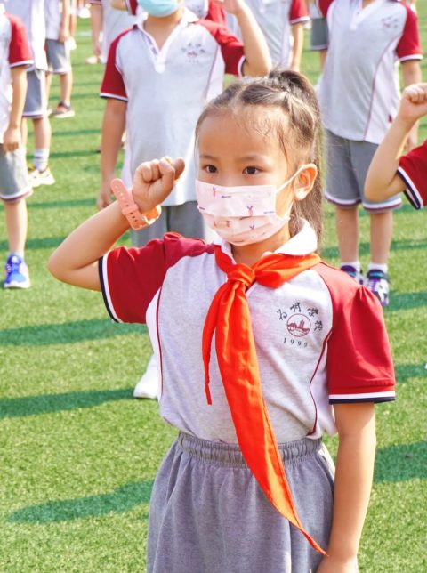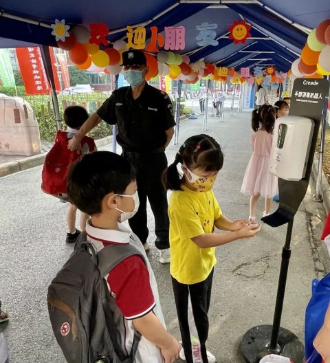 同学们穿着统一的校服,意气风发,以饱满的精神迎接新的学期。走进校园,第一件事是做好手部消毒,保持良好的卫生习惯才能拥有强健的体魄。