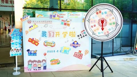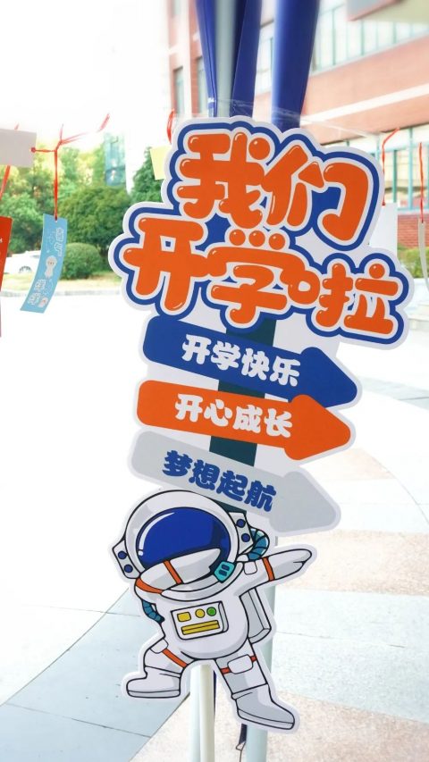 校园里精心的布置,五彩缤纷的气球、宇航员的开学展板、热情励志的开学标语,让这个迟来的开学依然显得仪式感满满,一排排写满祝福的小书签,是老师们对同学们新学期最诚挚的祝福!