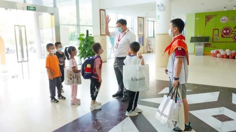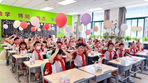 第一次来学校,还不熟悉校园的一年级小萌童们在哥哥姐姐的带领下,走进自己的班级,看到了崭新的图书和老师们准备的开学礼物,清新、优美、暖心的环境布置让他们迅速找到了家的归属感。