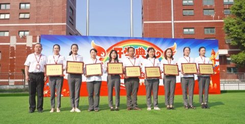 开学典礼上,共有38名同学获得为明之星,9名同学获得区级优秀学生干部,10个班级获得优秀班集体荣誉,学校领导为老师同学们逐一颁奖。
