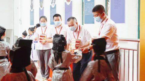 校领导为每位新生发放入学礼物——新华字典。