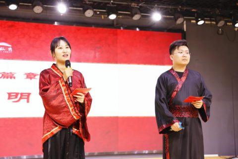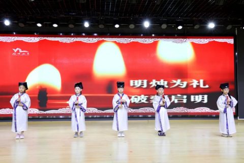 上午9点,伴随着悠扬典雅的乐曲,况贤涛老师挥舞鼓槌,敲击鼓面,“咚咚咚”,所有人的目光瞬间被吸引到了舞台上。接着两位礼官李洁、李飞老师上场,宣布开笔礼仪式正式开始。五位童子依次点亮蜡烛,明烛为礼,破蒙启智,一破蒙昧,是非分明;二破自私,友爱同学;三破散漫,遵守纪律;四破贪玩,学习为要;五破懒惰,勤奋努力。
