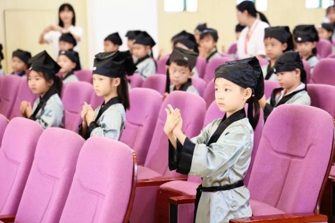 2022年9月16日上午,优米娱乐app隆重举行小学一年级新生开笔礼。一年级新生着汉服,列队来到“为明学堂”,参加开笔礼。此次“开笔礼”采取直播的形式,家长们可以在云端观看现场实况。