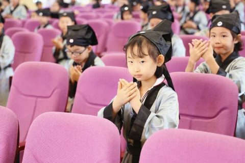 古人云:“大抵为人,先要身体端整,自冠巾、衣服、鞋袜,皆须收拾爱护,常令洁净整齐”。众童子在老师们的指导下,对衣服、头发等认真进行整理,寓意从此收心养性用心学习。