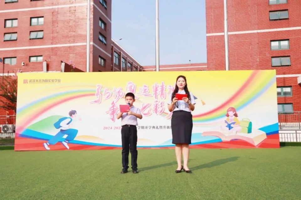 奥运汲能立凌云之志,追光奋进启璀璨新程。随着2024年巴黎奥运会圆满落幕,丰富多彩的新学期也如期而至。为发扬中国健儿在奥运会场的拼搏精神,培养同学们的爱国主义情怀,点燃新学期奋斗激情,2024年9月2日武汉光谷为明实验小学部特举办以“弘扬奥运精神,争做七彩少年”为主题的开学典礼。