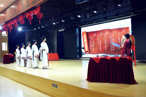 伴随儿女初成,父母鬓角白发新增。他们对孩子的养育和教导,孩子们永记在心。孝道根本为爱敬,孩子们不负双亲期望,纷纷上台为父母献上一束鲜花念亲恩。礼成后,曾子瑜妈妈作为家长代表致辞,表达对孩子的期望,对学校的感激!