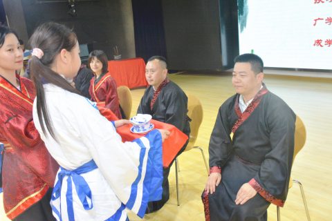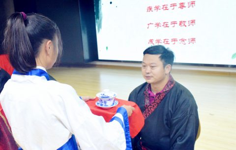 回想初入校园,年幼无知贪玩。老师呵护教诲,爱心智慧引导。学习知识技能,文学艺术熏陶。为感恩老师辛劳,学子们在一声声“志学在于遇师;进学在于从师;疾学在于尊师;广学在于敬师;成学在于念师。”的敬辞中,清茶一盏表寸心,奉茶谢师恩。