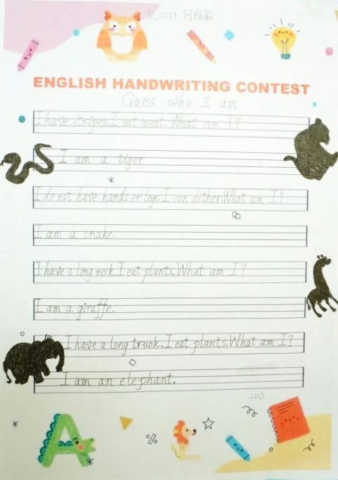 一分耕耘一分收获,一幅幅作品尽展学生才华。此次英语学科素养展示大赛不仅提升了学生对英语学习的兴趣,同时也让同学们感受到英语学习的快乐。希望光谷为明的孩子们于润物细无声中浸润,学而习,习而练,以此次大赛为契机,不负韶华,逐梦远航!