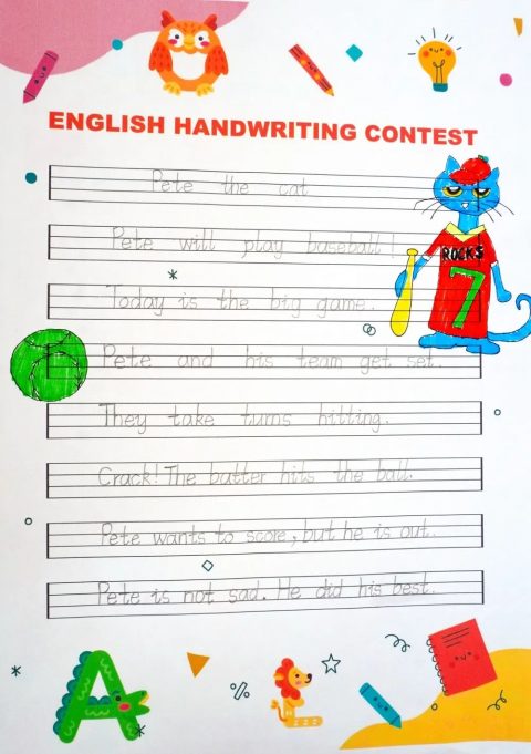 随后,英语老师们对书写作品进行汇总,精挑细选,层层把关,评选出决赛作品。