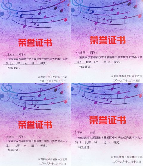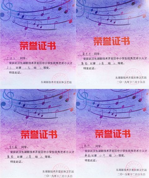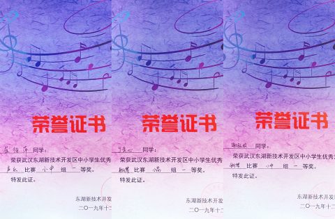 我校参加2019年东湖高新区优秀艺术小人才比赛获奖喜报
