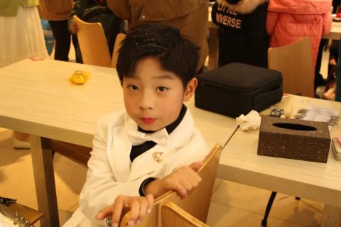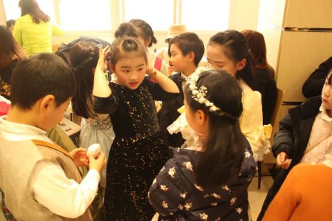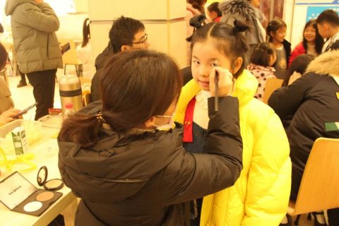 化妆时,一个个平时活蹦乱跳的孩子,也为了自己的美丽收起了平时爱闹的心性,安安静静排队等待化妆,这时候一个个都美(an)丽(jing)的像小天使。