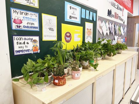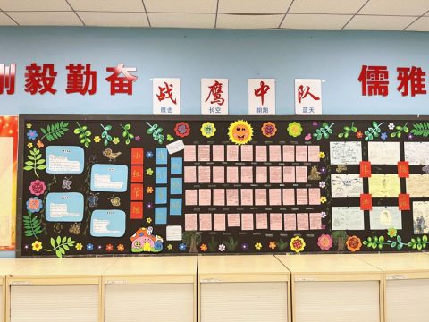 “鹰击长空,翱翔蓝天,我为战鹰,勇往直前”是八(1)班战鹰中队的口号;鹰隼翱翔、珹冕之鹰、鹰击长空、鹰雄联盟为四个小组的番号;全体小战鹰发挥聪明才智,共同设计和布置班级文化:战鹰功勋榜、身边的榜样、优秀作业、班徽设计、原创英文励志海报、一盆盆茁壮成长“佩戴名片”的绿植等,远看眼前一亮,近看如沐春风!教室的每一面墙壁都会“说话”,达到了“润物细无声”的教育效果。