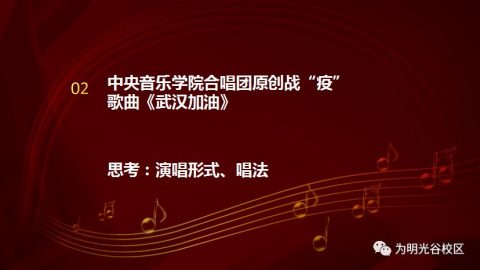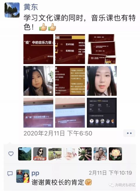 当我们在分享某些歌曲的时候,我看到很多学生线上留言“武汉加油”、“中国加油”……我觉得那一刻,就是教育的意义,也是音乐的力量。