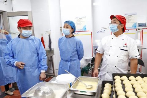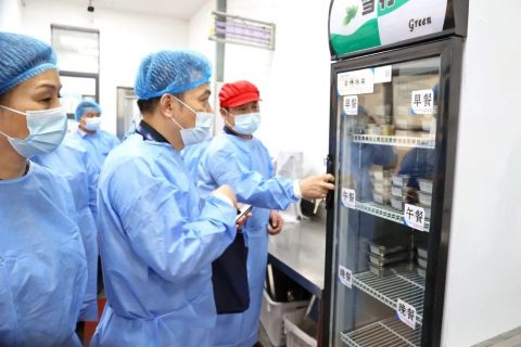 领导们身着防护服,深入学校食堂的厨房间、备餐间、储物间等重点场所,现场检查学校食堂供应资质、存贮形式、食品加工制作、配餐备餐、食品留样、生熟食品分离、卫生安全以及餐饮具清洗消毒的落实情况。经过系统全面的检查,督导组一致认为我校食堂规章制度健全,食材监管细致到位,从业人员管理规范,就餐环境卫生整洁,并对我校食品卫生管理给予了高度评价。