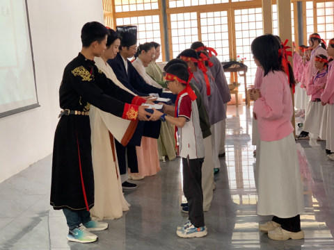 为天地立心,为生民立命,为往圣继绝学,为盛世开太平。研学伊始,为明学子祭孔典礼,整肃衣冠,朱砂启智,尚礼扬善,智圆行方,以此为始,拉开终南山研学的序幕。