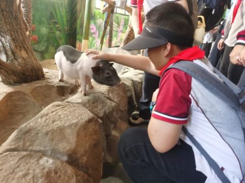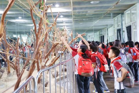随后,同学们走进萌宠乐园,近距离接触蜥蜴、鹦鹉、小浣熊等陆地动物,了解部分陆地动物的演化历程。同学们用记录和拍照的方式搜集着资料,形成研学游记。
