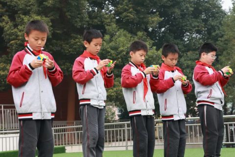 玩是孩子们的天性,在玩中可以增长智慧,激发潜能,五六年级同学带来了一场精彩纷呈的竞技比赛,魔方在孩子们手中不断变换、旋转,汉诺塔在团队的协作中展开了“乾坤大挪移”,孩子们以智慧加速,和时间赛跑,玩出了精彩,更玩出了智慧。