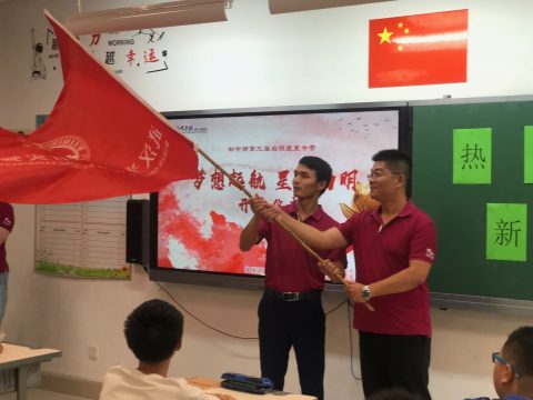 从小学步入初中是每一个同学从童年到少年时期的跨越。初中部王乐平主任与德育处陈龙主任首先进行了夏令营授旗仪式。红旗象征着启明星夏令营活动的圆满进行,象征着希望,王主任将手中的红旗,郑重交给德育处陈龙主任,代表着光谷为明第一、第二届启明星夏令营所创造的历史与闪耀,进取的精神薪火相传,来到2019,象征着参加本届夏令营的同学们将以一种更灵活、更坚韧、更有力的状态迎接崭新的初中阶段。