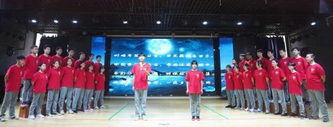 乡思是一棵没有年轮的树,永不老去,它总在有月亮的晚上“响起”。九(1)班同学的朗诵有写作背景介绍,有内容解读,他们身着红通通的班服,用《中秋吟月》把诗会的场面,炒得火热。
