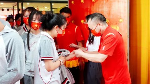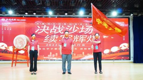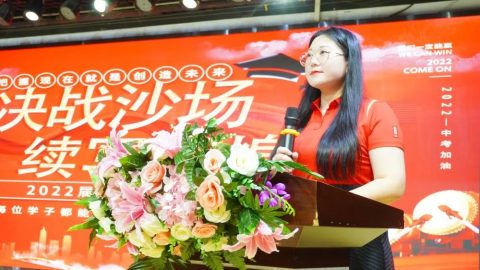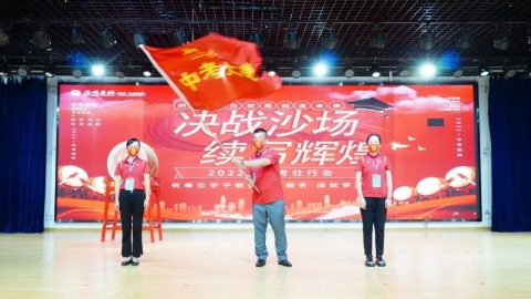 2021届班主任代表肖丽主任将手中的中考战旗郑重交给初中部王乐平校长,代表着光谷为明中考战队在2021年创造的辉煌、进取的精神薪火相传,2022届中考教师代表杨梦珠老师接旗,预示着本届中考定将不负众望,续写辉煌。