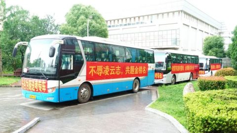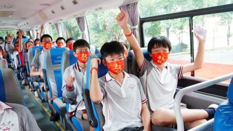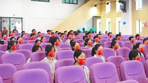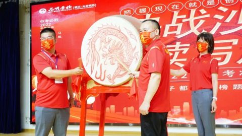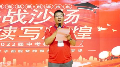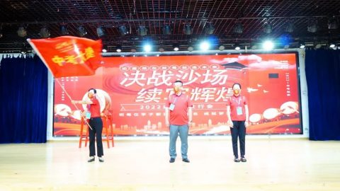 2022年6月19日下午两点三十分,“决战沙场,续写辉煌”中考壮行会隆重举行,学校中层领导干部与全体九年级师生齐聚报告厅,传战旗、擂战鼓、振士气、燃斗志、佩戴中考幸运手环……为九年级学子们的中考之行呐喊助威,这一战,让我们顶峰相见。