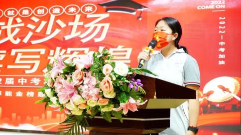 孙念恩同学代表全体九年级学子,将心中的那份信念传递,相信他们将以火一样的激情、必胜的信念、科学的方法和最饱满的状态迎战中考,一路披荆斩棘,勇往直前!