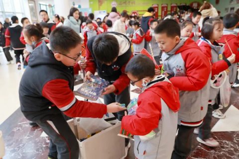 “快来看看,文具图书爱心甩卖!”