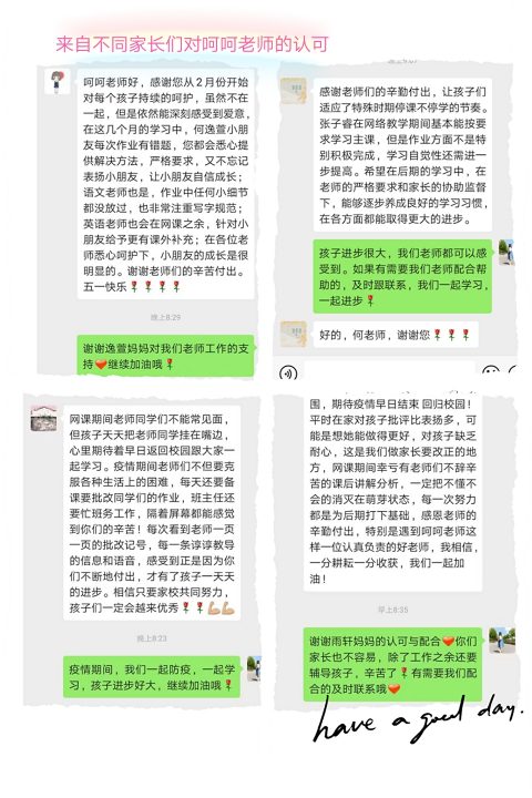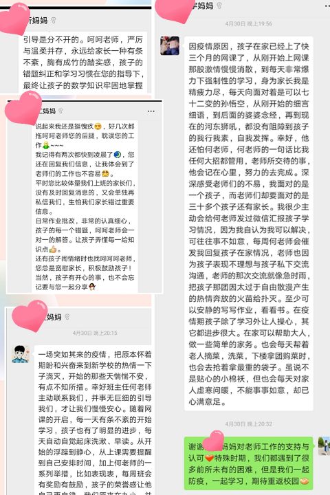 复工后,“呵呵老师”主动在班里进行调查,孩子有没有陪伴?家里谁负责督促学习?父母都复工了的,一对一加孩子的微信或QQ进行辅导。虽然这给自己增加了很大的工作量,可何老师却甘之如饴。对她来说,优二七班的32个孩子,都是她的宝贝,她的牵挂。家长们也都习惯了,孩子闹情绪了,找何老师;孩子不听话了,找何老师;孩子学习不认真了,还是找何老师。