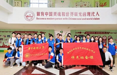 本次的特色班会课分为两个部分,第一部分由街道青年干部(毕业于清华大学、浙江大学、武汉大学的高材生)以及华中科技大学的在校大学生们给初中部的孩子们分享大学生活和大学生课程等等,给他们的心里种下一颗理想种子;第二部分是由华中科技大学电气与电子工程学院先锋服务队为小学部的孩子们带来了《来自“皮卡丘”的神奇力量》和《趣味物理小实验》课程。他们通过一个个生动有趣的电力小实验给孩子们带来了鲜活的生活知识拓展和生活常识延伸。