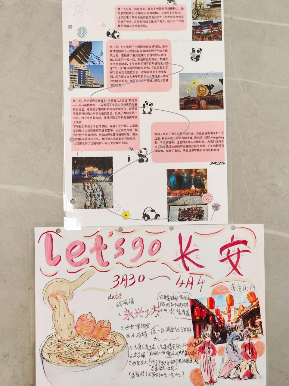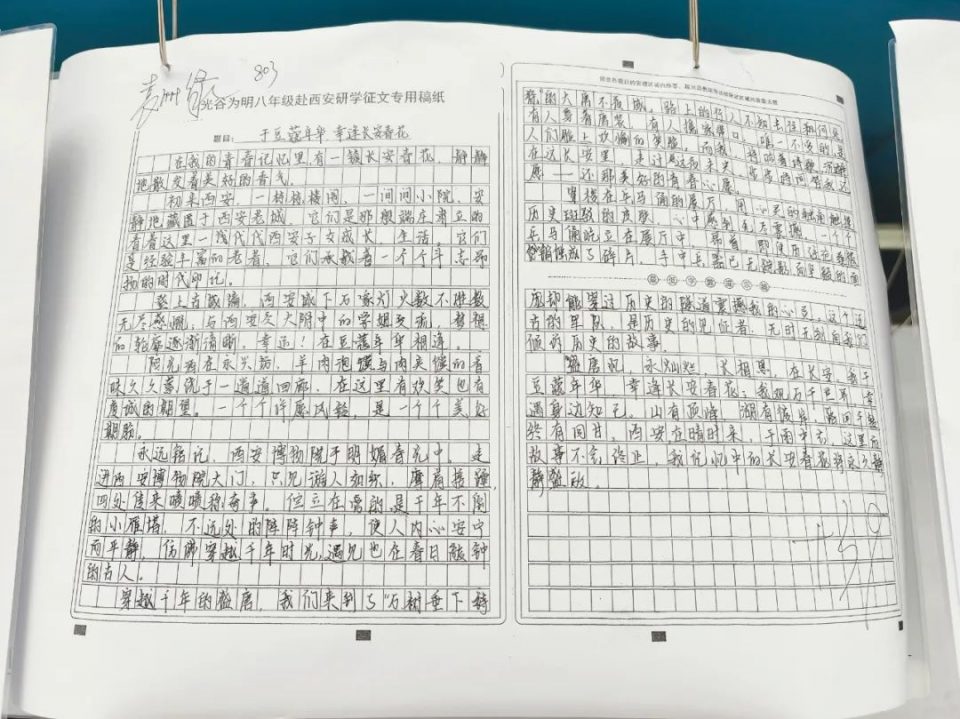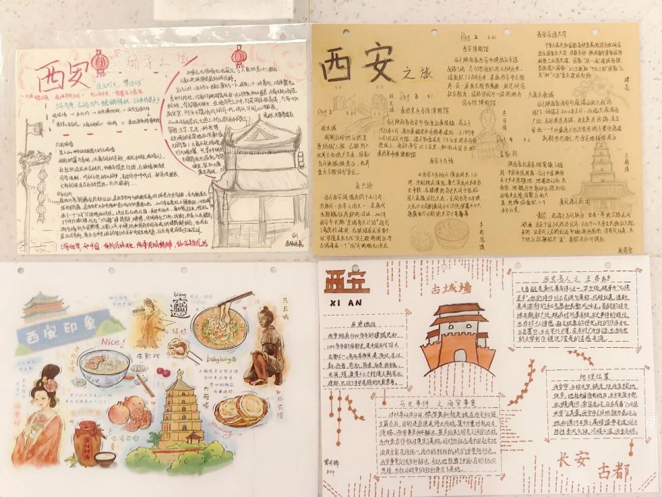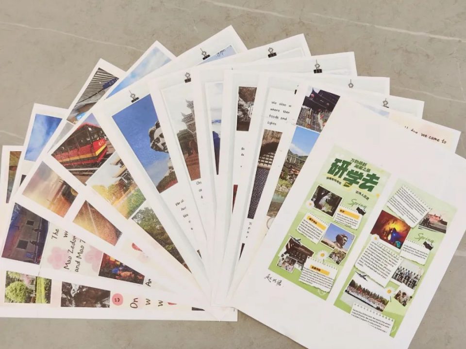 行走中的课堂是跨学科融合教育的绝佳时机,语文、英语、历史、地理、物理、化学等备课组在研学前通过多轮次的集体研备,设计出集情境性、综合性、实践性相结合的丰富课程。研学活动结束后,各班同学在相关老师的指导下进一步整合“行后成果”,在口头分享展示之余,推出特色鲜明的研学实践作业。从讨论相关物理学知识到英语研学游记,从绘制游行日志图到拍摄研学风景,以及集美文、美照、个性视频为一体的美篇,同学们的研学成果形式多样,成绩斐然。