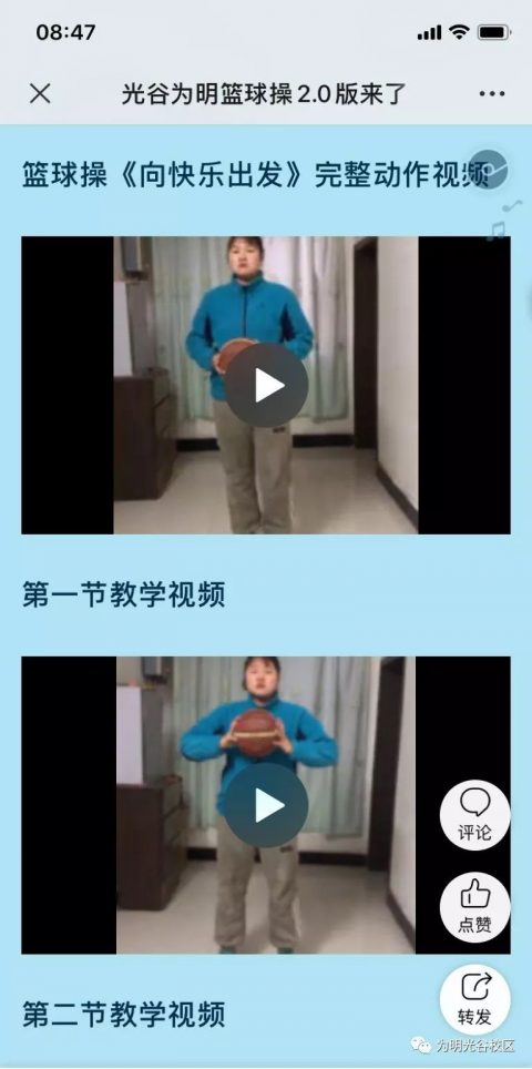 课间休息时老师们会提醒孩子们离开电脑进行放松,简单的活动活动身体,为后面的学习做好准备。为了让光谷为明学子们在家也能强身健体,体育组老师为孩子们精心录制了在家就能完成的健身篮球操,让孩子们跟随着老师的脚步,积极运动起来,使身体素质得到进一步的增强。