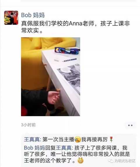 家长们纷纷表示网络课程内容丰富,安排科学,孩子们兴趣很浓厚。在老师的悉心指导下,孩子们都适应得很快,他们跟着老师的节奏做好线上互动和线下练习,又回到了正常上课的状态。上课的形式改变了,但却改变不了为明课堂的教学质量,也改变不了为明老师们的上课激情与敬业精神,更改变不了全体为明人不惧挑战、迎难而上的作风。