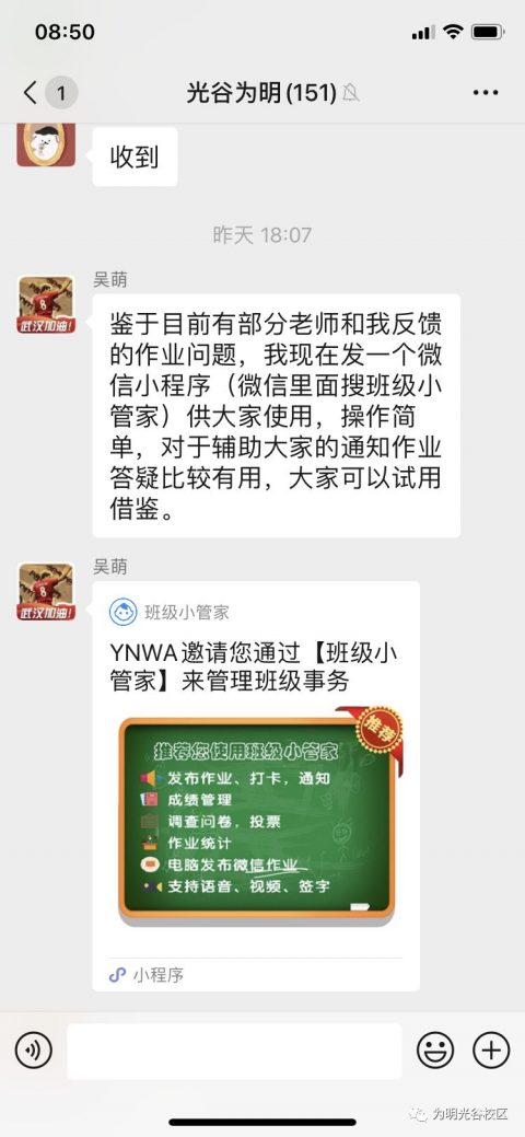 第一天的“停课不停学”学习任务在我校全体领导、老师、家长、学生的大力配合下圆满结束,每个孩子通过认真细致的学习都取得了新的收获。在接下来的教学工作中,光谷为明将以更加积极开放的心态面对新兴教学技术的应用,潜心研究,开拓创新,让优质线上课堂走进每一位为明学子的家门,打好疫情面前的“教学攻坚战”!