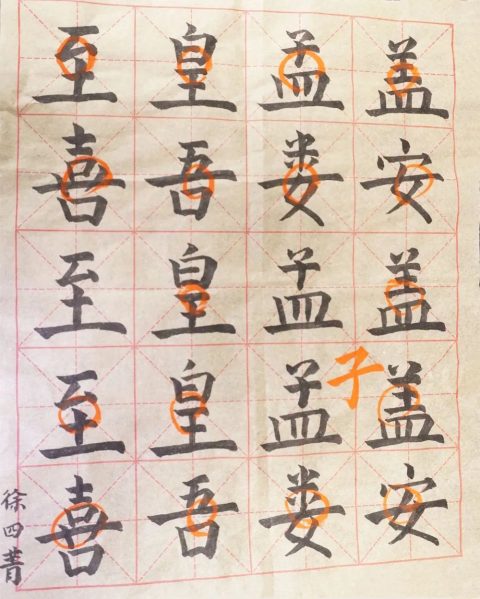 罗老师以“周”为例讲解,仔细观察“周”字外面两竖,前半段向里走,后半段向外走,所以是“相背”关系。要求大家在临习的时候,先认真观察汉字的“向背”关系,再下笔书写。为了巩固本节课所学内容,罗老师布置课后练习:临写颜真卿《多宝塔碑》第一页汉字。