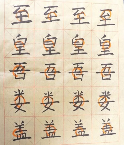 起初没掌握好技巧,大家会出现抖动或是粗细不匀称的情况。后来经老师指点,渐入佳境,屏气凝息、一气呵成,在画圆圈时毛笔轻轻地转换方向,观察笔锋绞笔。毛笔行一段之后,笔尖开始向边上偏离,这时候把笔稍稍提起一点点,再稍稍调整方向后原地按回去,练着练着,手下就有了感觉,一圈圈蚊香线从老师们笔下流出,做到心手合一、手笔合一。