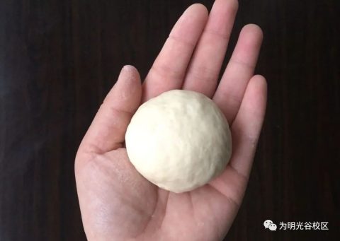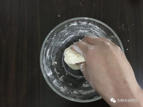 注意:控制水量,水过多会导致面团黏手,不易于操作