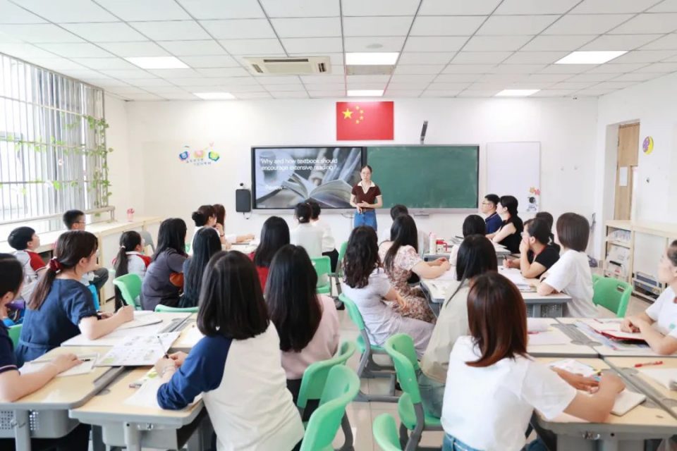同时,我们也有幸邀请到了语文名师工作室张顺老师进行跨学科研讨与指导,张老师从广泛阅读之于语文学科的观察角度出发,深入探讨了阅读在语言学习中的底层逻辑和核心作用,分享了阅读之于学生的力量,带给老师们诸多的启发。同时,张老师还提到要让阅读这个系统起作用,需要教师们打破学科的标签和疆界,做到组际的沟通,把学生放到学习中心,让他们成为学习者,独立的阅读者,而不仅仅是学科的学习者。张老师更鼓励老师们克服大阅读推进中的困难,多沟通、多合作。张老师的发言引发了在场教师的热烈讨论和互动。
