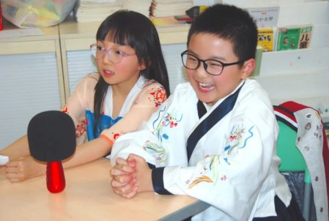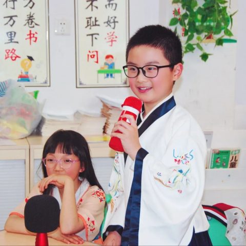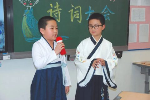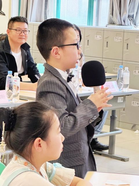 诗词大赛由小松班陈谨萱和李一辰两位同学主持。比赛分为“诗词常识”、“对诗成句”、“飞花令”、“风险投资”四个环节。