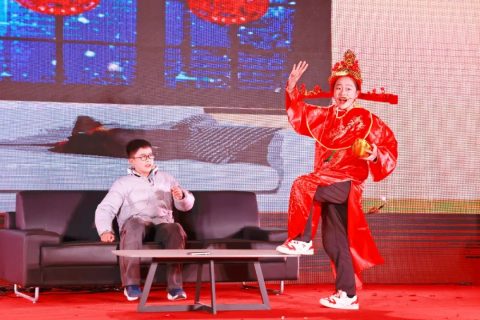 在这个温馨、祥和的时刻,一场别开生面的小品表演——《财神来敲我家门》非常应景。