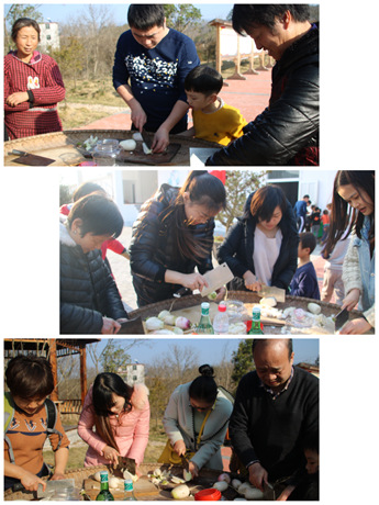 最后,孩子们和爸爸妈妈们合作,分工清洗食材、将萝卜切片装罐、淋上白醋和白糖、压上精心挑选的石头、密封,共同制作了美味的酸甜泡菜萝卜!小小的透明塑料罐封存的不仅仅是这美丽的河畔小村落奉上的最原始的自然美味,更装满了优一(1)班每位家长和孩子们在这里的最轻松惬意的美好回忆!他们小心翼翼地将这美食和美好一同打包,带回家和亲人们慢慢分享和回味!
