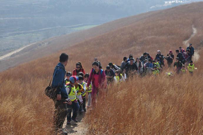 2016年12月9日,星期五,我们国一(2)班的全体同学趁着冬日暖阳,走出教室,拥抱自然,与家长们一起开展了期待已久的“成长必修、阳光随行”的亲子户外登山,感受自然之美的拓展活动。(此次的目的地是龙王尖,位于黄陂李家集街道珍珠岭,有连绵的大片草甸,最出名的,是大规模的古寨城堡。龙王尖山寨是为御匪安民而修建,山墙基本完整,蔚为壮观,号称武汉的长城。寨内昔日有四通八达的大小道路,现已消失在稠密的灌木、藤蔓、野草之中。)看到这里,龙王尖是不是太值得我们去征服和探索呢?