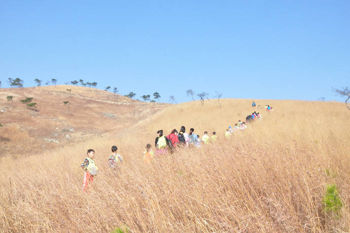 10:30我们到达目的地,清点所需装备,带好一顿路餐以及所需要的物品,教练一头一尾有条不紊的带领着队伍,爸爸妈妈们走在宝贝的后面,带上喜悦开始了我们的徒步之旅。一路上,大家兴致高昂,欢声笑语连连,沿山路而上,或你追我赶,或手拉手一起前进。在领队的带领下,孩子们都走在了我们的前头,“妈妈,你快点啊!”“爸爸,我走的比你快!”在这一声声的对话中,进一步增进了父子、母子间的亲密感。