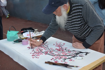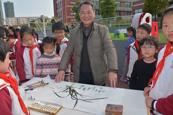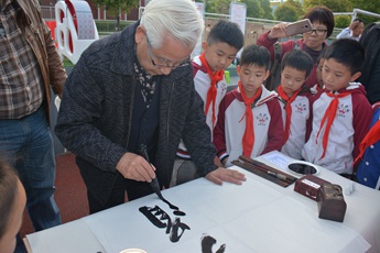 这次活动最特别而精彩的环节,就是楚天书画院的著名书画家走进校园,同孩子们共同写字作画,为活动增光添彩。书画大师和我们爱好书法的学生,家长们同台献艺,让人一饱眼福。书画名家挥毫泼墨,如行云流水,笔走龙蛇,遒美健秀,令全体师生和家长们大开眼界,深厚的功底,高超的技艺令人惊叹不已。好一幅磅礴大气,古香古色的校园书画图!