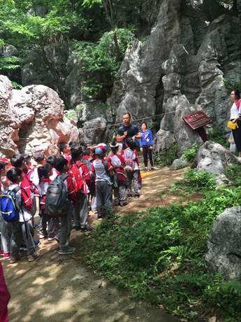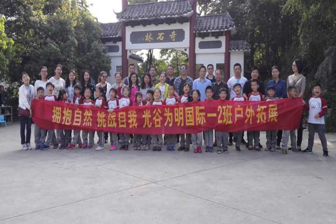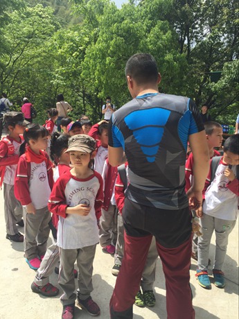 山道蜿蜒,满目青青翠色,如世外桃源般幽静的咸宁通山——星星竹海风景区,被孩子们稚嫩的欢笑声唤醒。一学期一次的拓展实践课终于开始了!兴奋得叽叽喳喳的孩子们,一下车就在第一时间见到了负责拓展活动的Tiger教练,严肃风趣的教练一番纪律交代后,大家迅速进入状态,各自从爸爸妈妈手中接过水壶,背上自己的背包向大山进发。