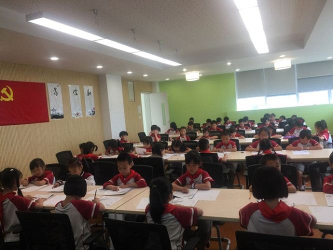 决赛当天,从各个班级里脱颖而出的60名小小书写者来到校二楼会议室互相切磋。学生按照指定书写内容,从初赛到决赛都统一书写用纸,规范学生书写。真所谓“The style is the man.字如其人”,比赛中,学生们端正坐姿,一笔一划认真仔细地书写,一个个优美灵动的字母从他们的笔尖流淌出来,此刻个个孩子都气质非凡!