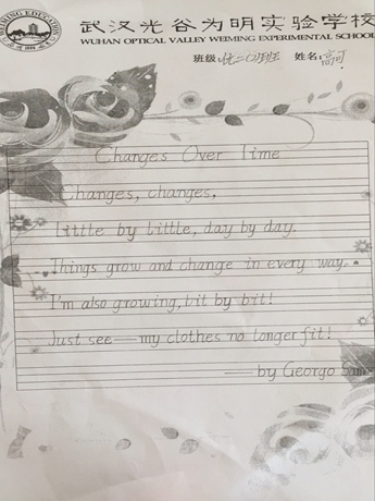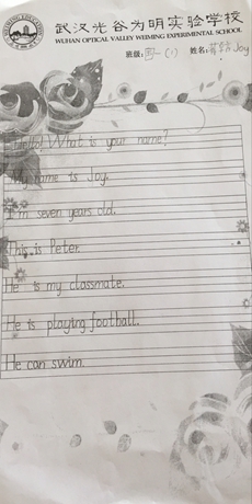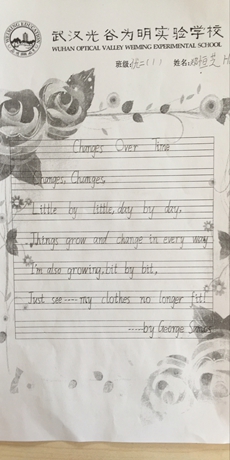 英国教育家洛克说过:“一切教育都归结为养成学生良好的学习习惯,往往自己的幸福都归结于自己的习惯。”为进一步加强学生良好英语学习习惯,规范低段学生的英语书写,提高学生对小学阶段英语书写的重视程度,光谷为明实验学校于2017年5月16-19日组织了小学一、二年级的英语书写比赛。