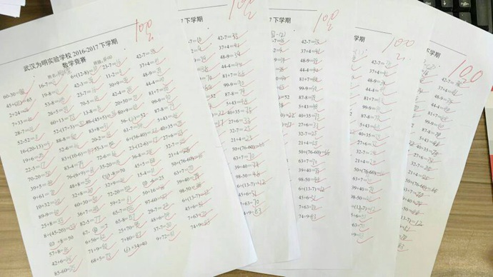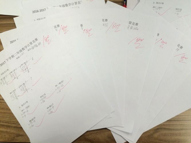 本次竞赛的试题灵活多样,低段考察了学生的口算能力,高段考察了学生的计算能力;题型包括口算、脱式计算、竖式计算、简便运算等,竞赛以每班为单位进行,全员参与,比赛成绩评出一、二、三等奖;竞赛中孩子们满怀信心,个个神情专注,比准确、比速度、比思维、比智慧,分秒必争;竞赛结束后,任课教师认真仔细评卷,对卷面做了整体分析。