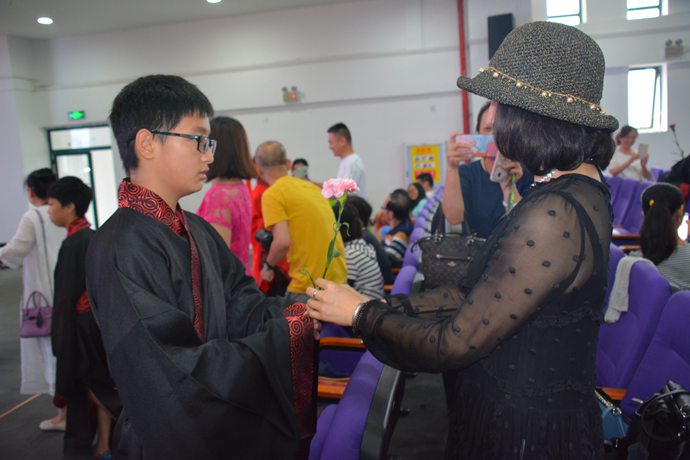 2017年6月17日,小升初考试结束之后,优米娱乐app2017届全体师生、家长欢聚一堂,在学校礼堂举行传统文化毕业典礼。